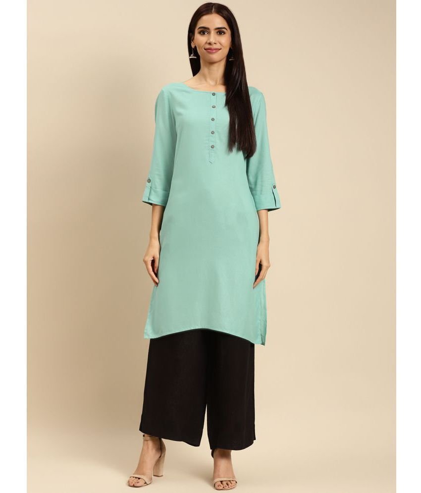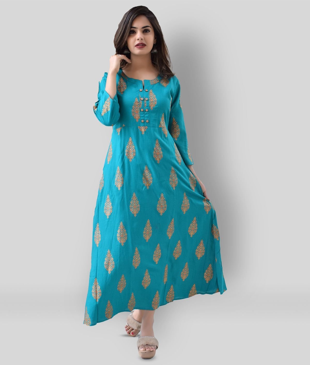 MM Women Teal Blue & Golden Yoke Design Kurta