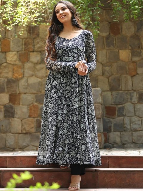 MM Floral Yoke Printed Mirror Work Kurta