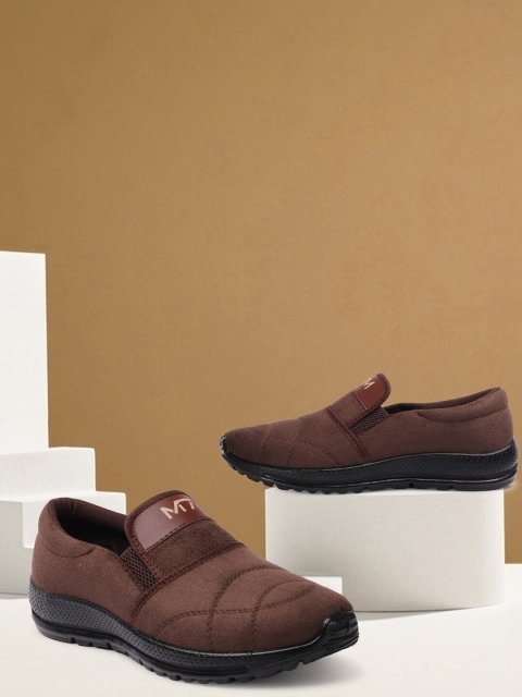 MM Men Brown Perforations PU Slip-On Loafers
