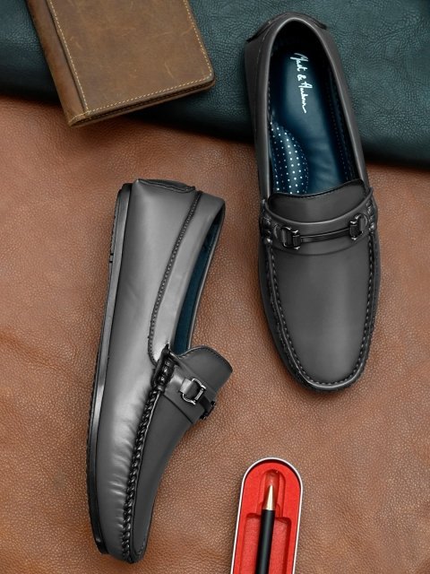 MM Men Black Textured Slip-On Loafers
