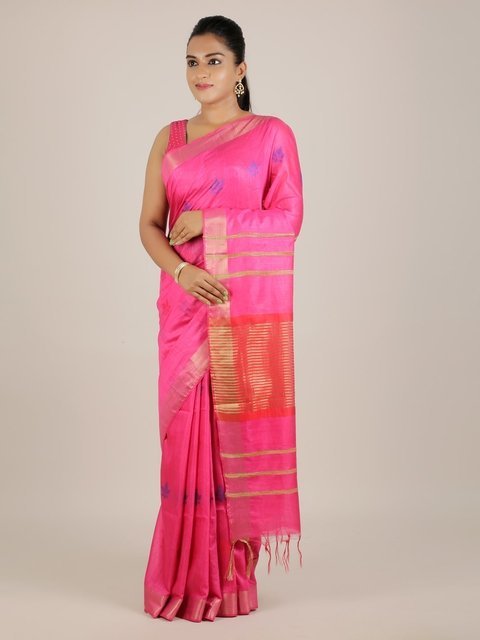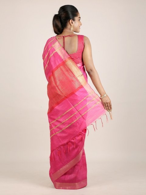 Pothys Pink Striped Linen Blend Saree