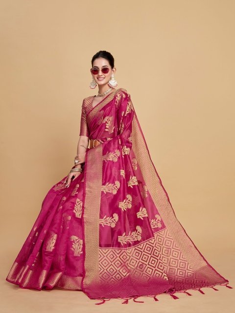 MM Floral Woven Design Organza Saree With Blouse Piece