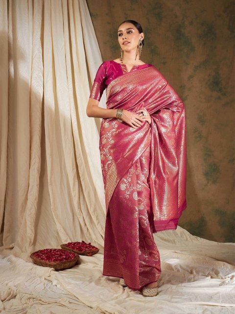 MM Ethnic Motifs Woven Design Zari Banarasi Saree
