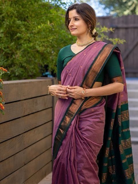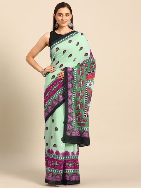 Charukriti Green & Magenta Cotton Saree