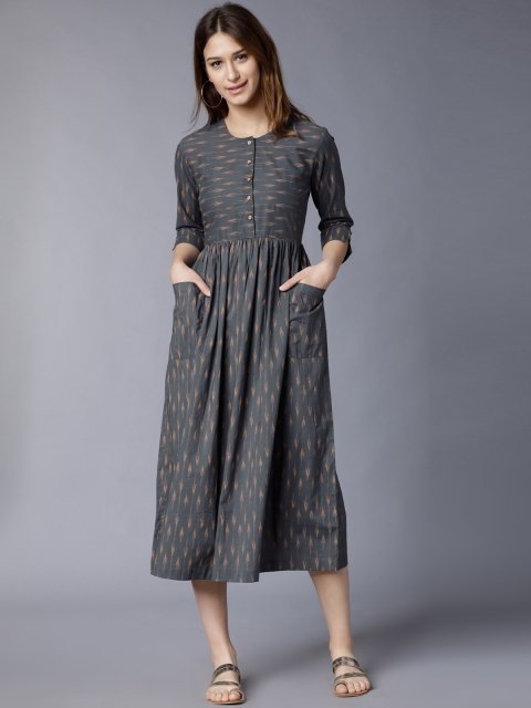 - Black and blue floral print a-line ethnic dress