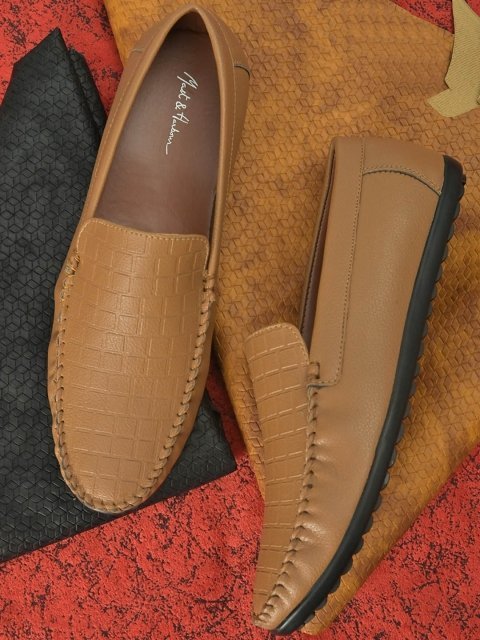 MM Men Tan Textured Loafers