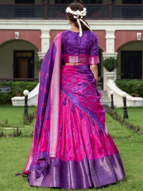Elegance in every fold Shibori print Dola Silk lehenga