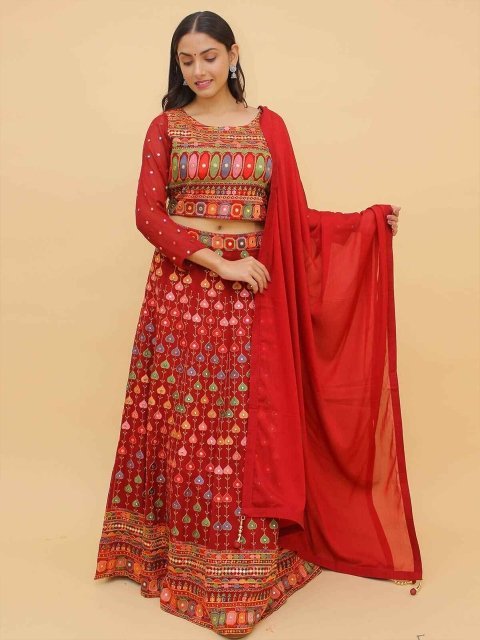 LOOKNBOOK ART Printed Ready to Wear Lehenga & Unstitched Blouse With Dupatta