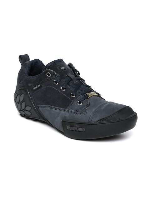 A pair of round toe blue sneakers ,has regular styling,